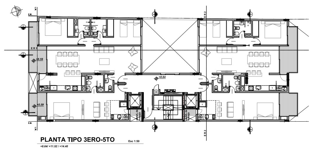 Carpintería exterior perfiles de aluminio 1º | calidad Piso porcelanato o cerámica 1º calidad. | Pintura látex interior 1º calidad. | Puertas placas de madera con herrajes. | Placard frentes de placard con hojas corredizas. | Muebles cocina de granito / pileta acero inoxidable.| Grifería mono cromado. | Instalación para horno y anafe eléctrico. | Baños revestimiento cerámico moderno de vidrio. | Telefonía / TV / internet instalación para conexiones. | Instalación eléctrica circuitos interruptores térmicos. | Termotanque eléctrico individual por unidad. |Climatización conexión sistema Split frío-calor.| Instalaciones de agua cañerías sistema termofusión.