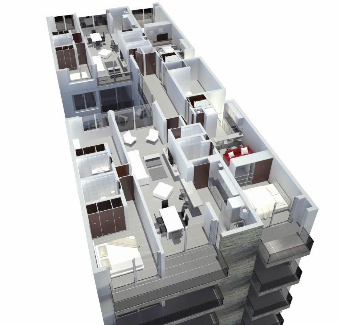 -95.56 m2. 2 dormitorios en suite. | 81.46 m2. 2 dormitorios. | 43. m2 1 ambiente.